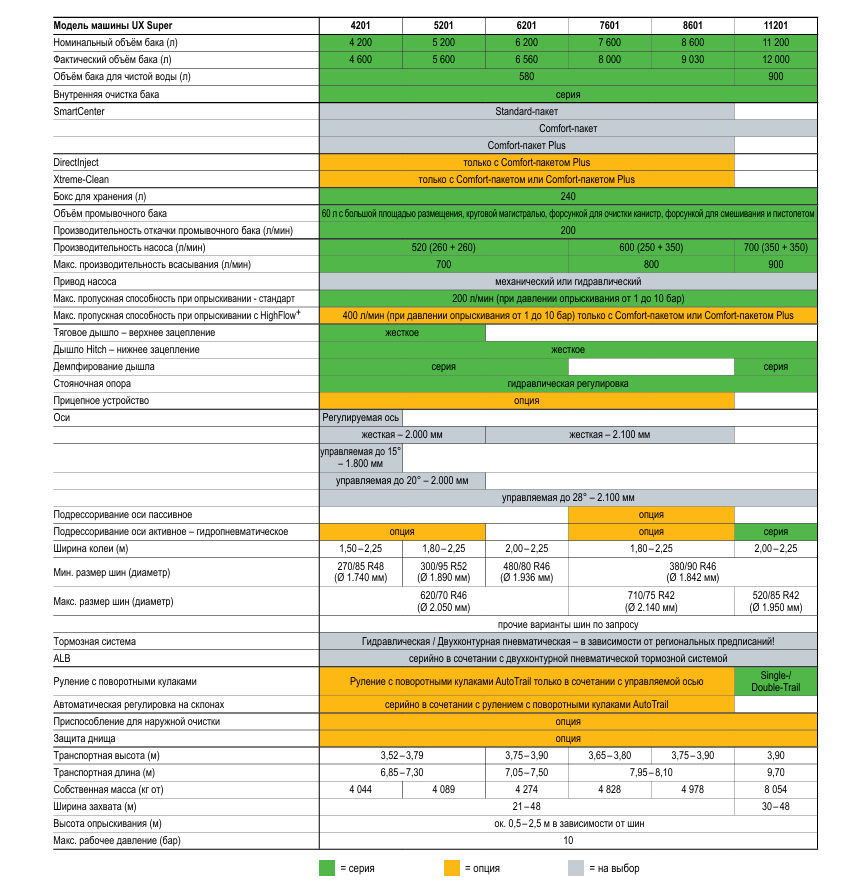 Прицепной опрыскиватель UX 11201 с невероятно большим объёмом бака 11.200 литров отвечает высоким требованиям к производительности опрыскивателей. Штанги Super-L2 и Super-L3 подкупают своей шириной захвата от 21 до 42 м и первоклассным ведением штанги. Благодаря мощным опциям оснащения прицепной опрыскиватель UX Super гарантирует максимальную производительность при высочайшей действенности.
