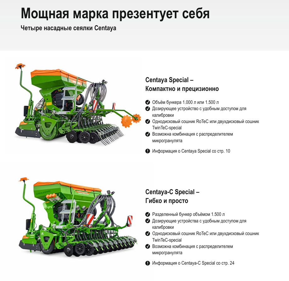Смотреть Проспект Насадная сеялка Centaya Special